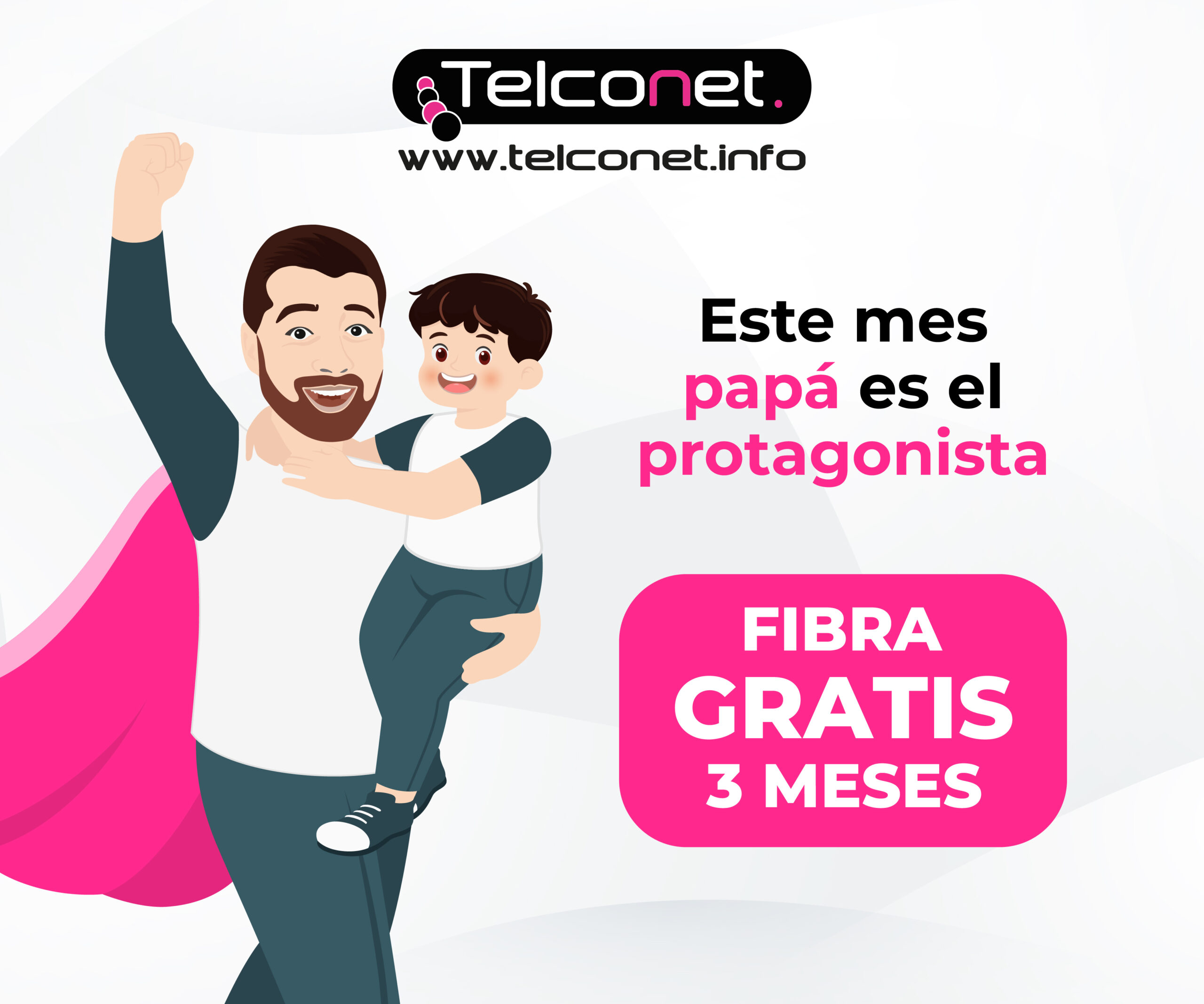 En Telconet queremos celebrar el mes de los padres por todo lo alto con una oferta irresistible: FIBRA GRATIS DURANTE 3 MESES