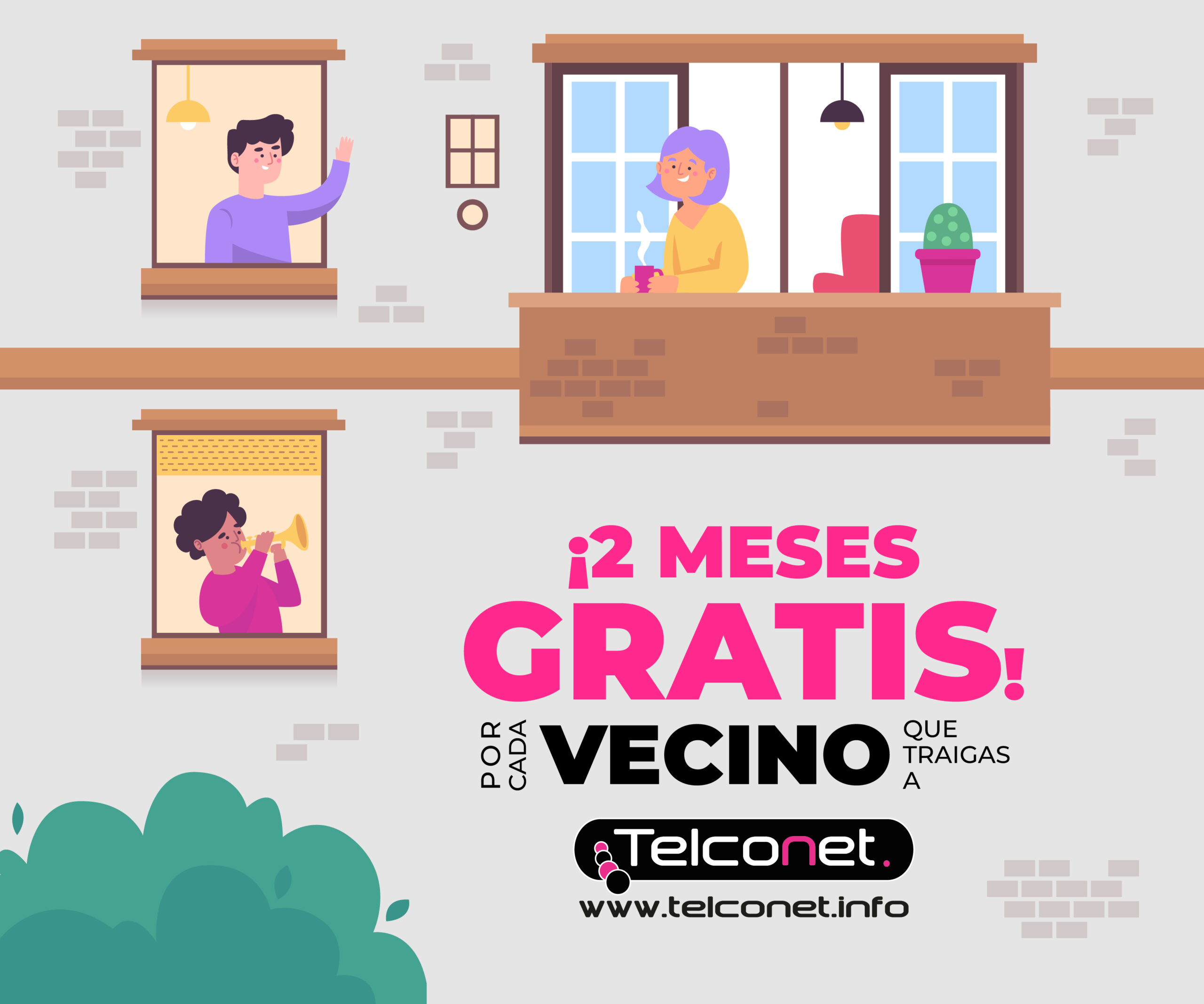 ¡Consigue 2 meses gratis de fibra óptica para ti y para cada vecino que traigas a Telconet! Invita, conecta… ¡y GANA!